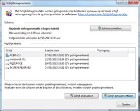 - Ga naar Start > Alle Programma's > Bureau Accesoires > Syssteemwerkset > Schijfdefragmentatie