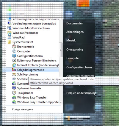 - Ga naar Start > Alle Programma's > Bureau Accesoires > Syssteemwerkset > Schijfdefragmentatie